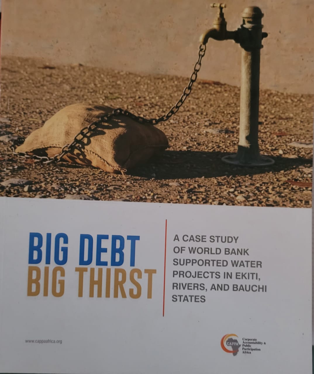 In a special book publication titled Big Debts, Big Thirst: A Case Study of World Bank Supported Water Projects in Ekiti, Rivers and Bauchi States, CAPPA deploying its research skills across three states of the country examines the implications of privatisation reforms as advocated by international financial institutions led by the World Bank. Putting all the loans under critical review and examination is what has resulted in this publication.