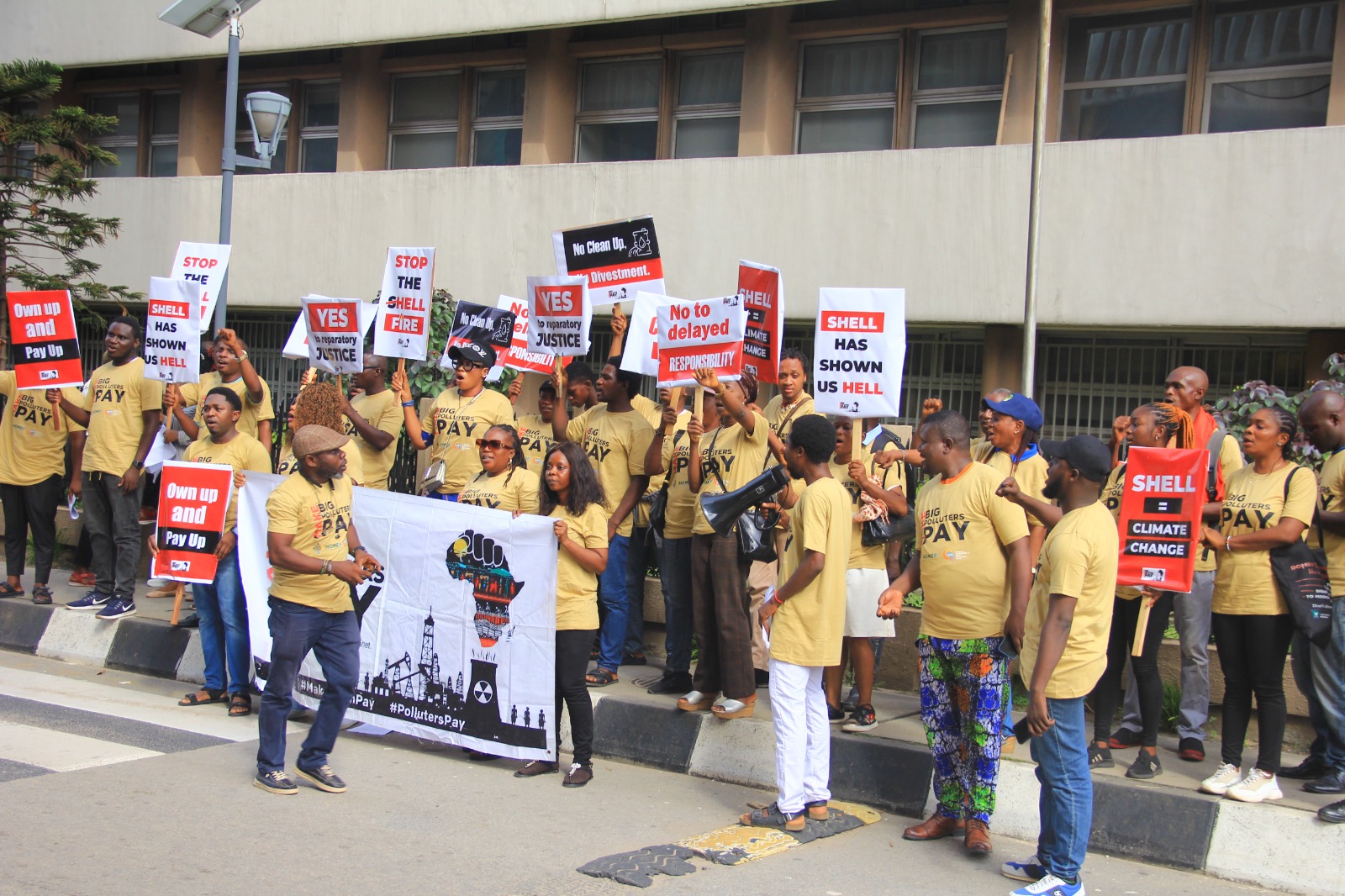 The protesters said: “While the entire leadership of Shell, including its Chairman, Board Members, Directors, and Stakeholders, convenes today in the United Kingdom for its Annual General Meeting (AGM), we gather here in front of its Lagos Head Office in Nigeria to re-state our longstanding grievances.