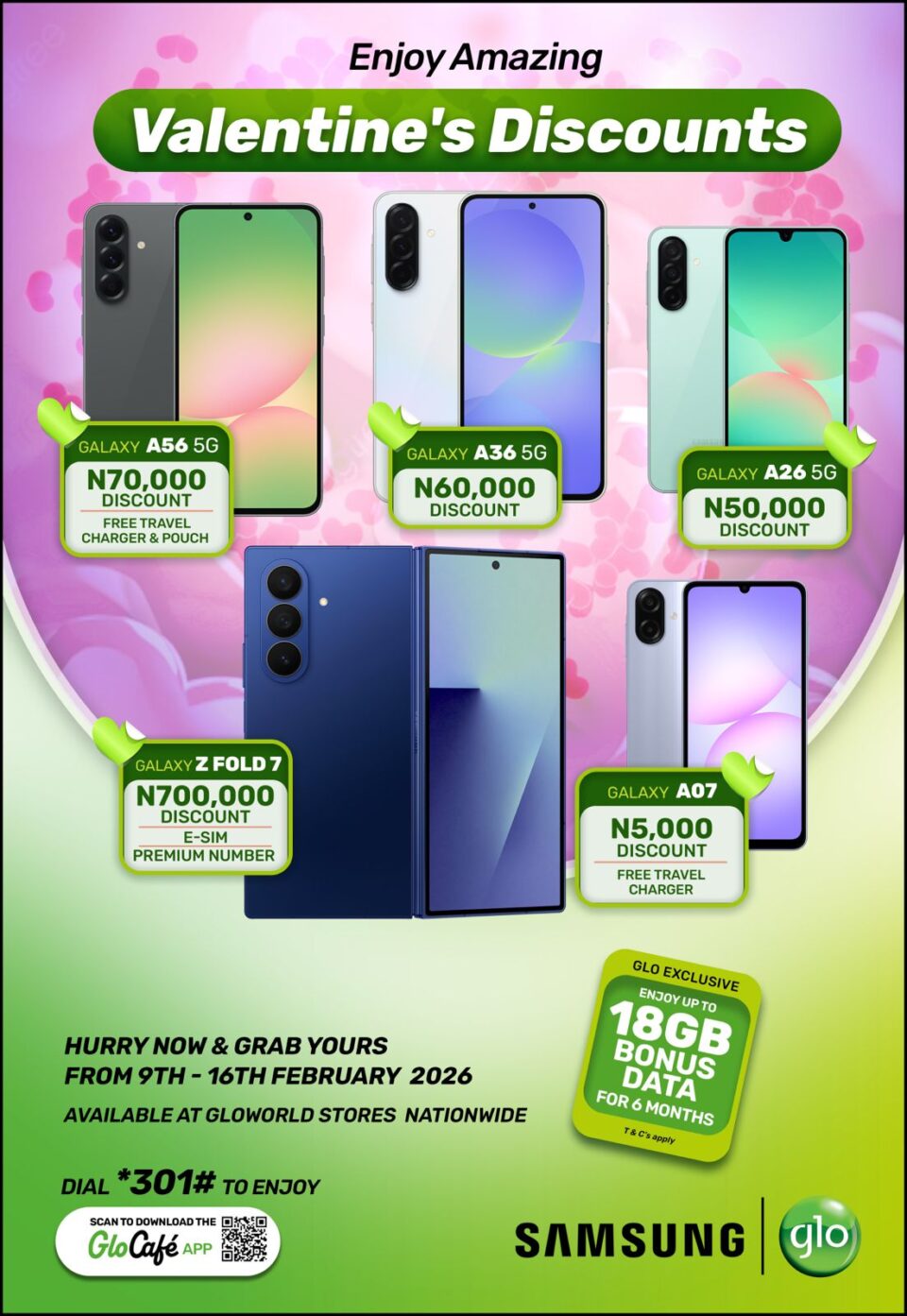 Globacom is marking the Valentine season with the launch of its Smartphone Promo, offering generous discounts on premium smartphones from trusted brands including Samsung, Tecno, and Infinix.
