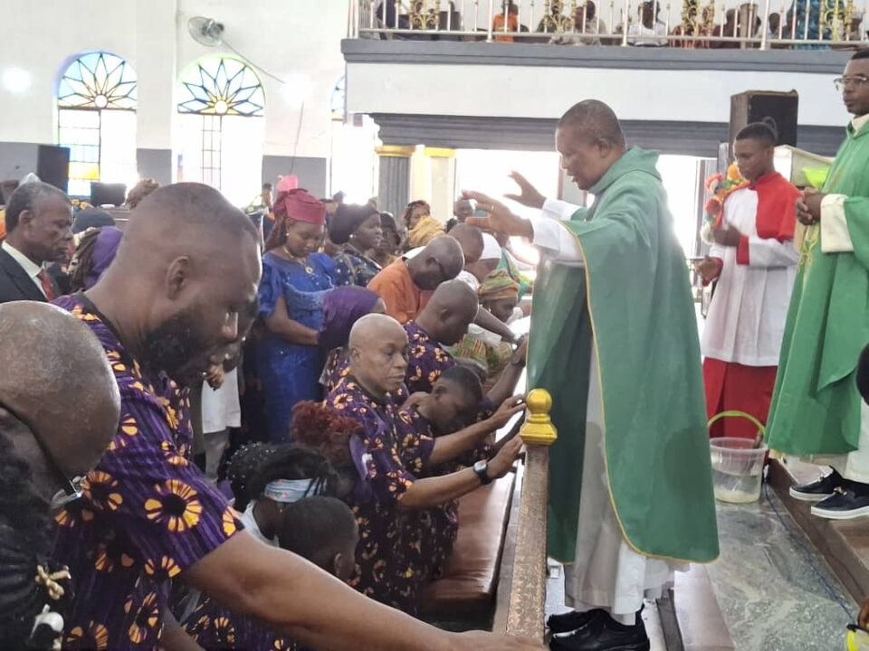 The ceremony, held during the 11:00 a.m. Mass, provided an opportunity for Sir Eva Njemanze, his family, and friends to express gratitude for the successful completion of Lady Njemanze’s burial rites, which culminated in her interment on October 15, 2025.