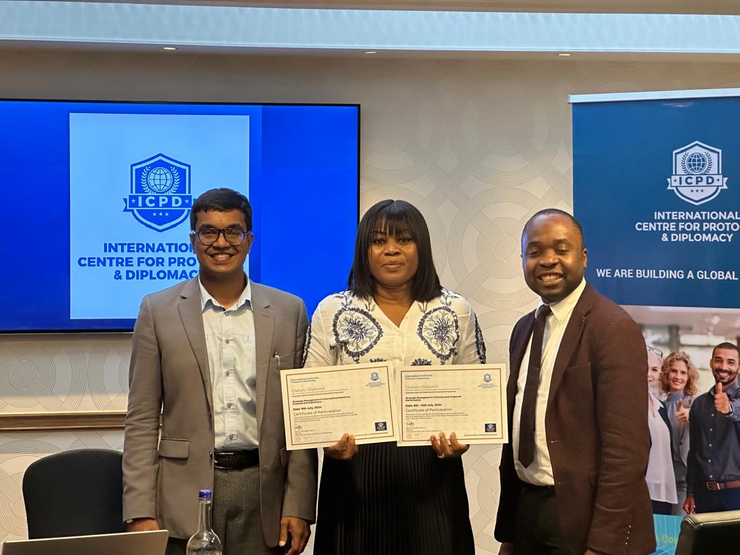 Olatutu Oladunni, the double certificate holder, had her sessions alongside other delegates from the Office of the President of Ghana, the Chief of Staff to the Vice President of Uganda, top presidential envoys from East Africa, the United Nations and the United Kingdom.