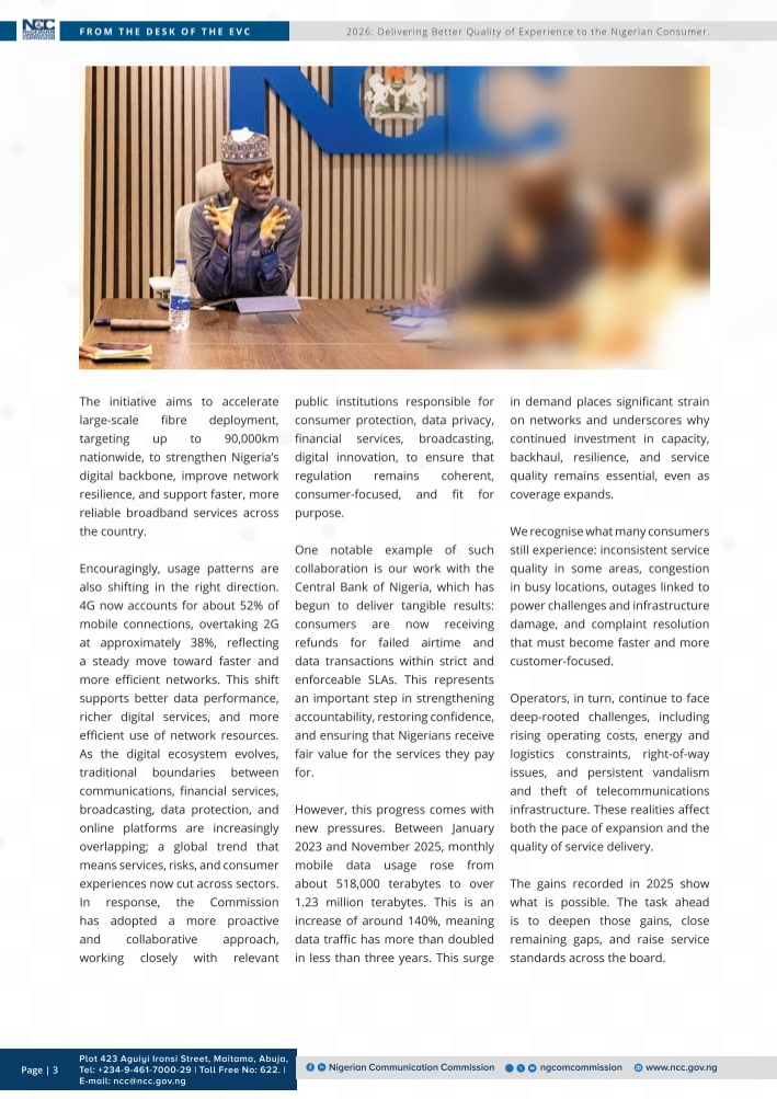 Yet, challenges remain. Infrastructure constraints, and uneven service quality in some areas remind us that progress must be deepened and sustained. In 2026, our focus is clear: better protection and value for consumers, a predictable environment for investment, and a resilient, secure communications ecosystem that leaves no Nigerian behind.