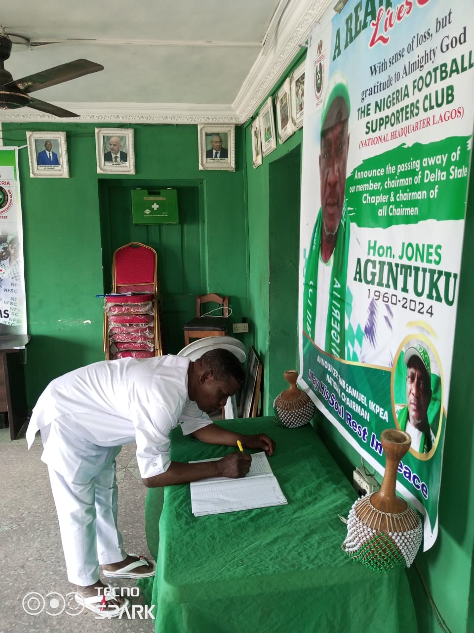 The Nigeria Football Supporters Club (NFSC) has officially opened a condolence register in honour of her fallen hero, Hon. Jones Agintuku.
