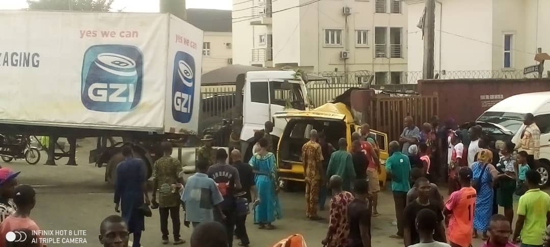The trailer which was coming from Fadeyi and driving on the sixth lane of the Funsho Williams Avenue road which has eight lanes was said to have had a brake failure, before the driver in trying to save the situation diverted to the left lain and it leaped through four lanes to smash a loading danfo bus heading towards Ikeja.