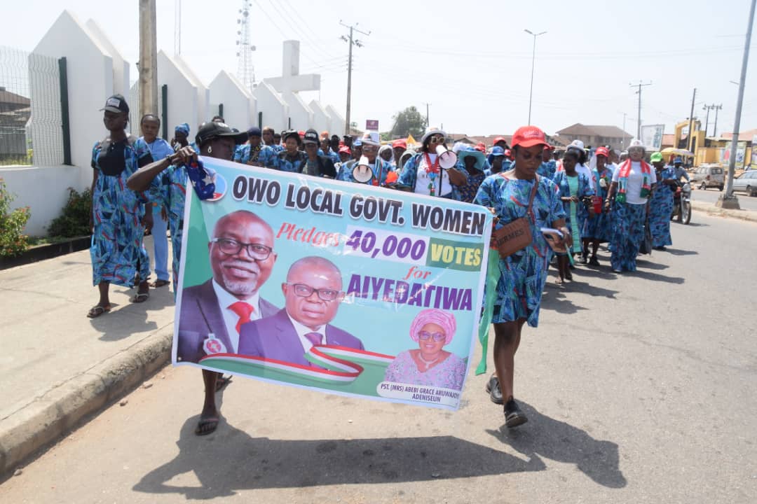 On Friday, women in their number in Owo Local Government Area stormed the streets for a massive rally for the governorship candidate of the All Progressive Congress (APC), Hon. Lucky Orimisan Aiyedatiwa.