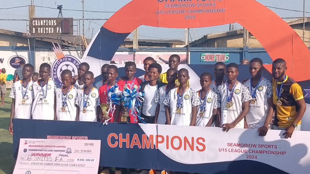 B United Football Academy proved bookmakers wrong following their 2-0 victory over Miracle Football Academy in the final of Seamoriow U-15 League Championship which was held on Sunday at the Seamoriow Sports Complex, Ikotun Abaranje Road, Alimosho, Lagos.